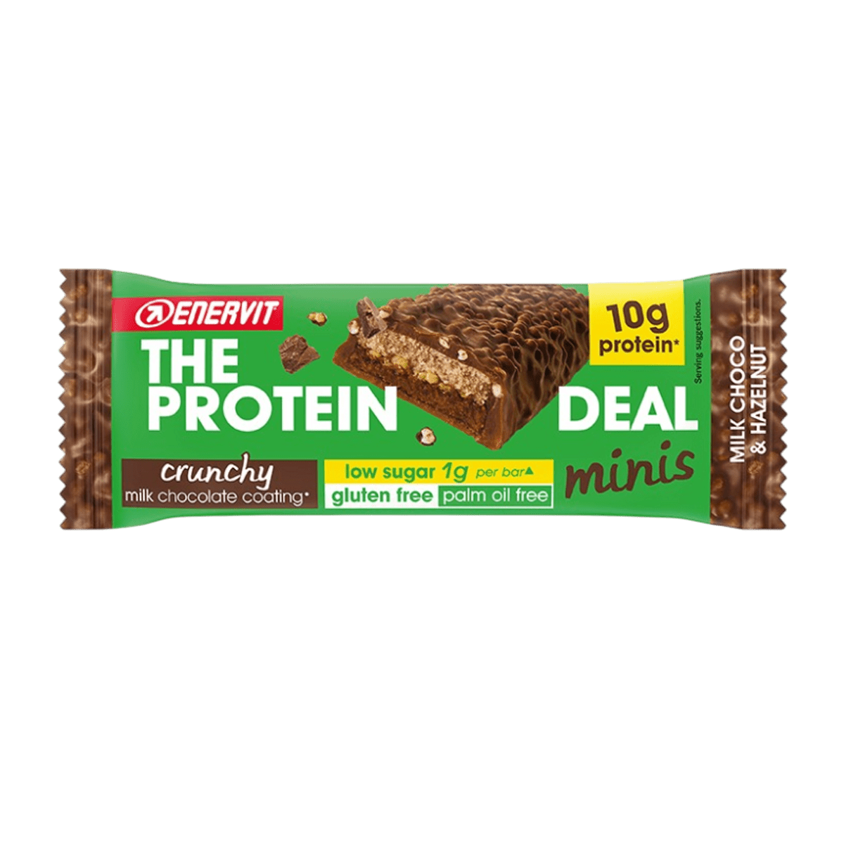 Sestavine: preliv iz mlečne čokolade s sladilom (33 %) (sladilo: maltitoli, polnomastno mleko v prahu, kakavova masa, mlečna sirotka v prahu, emulgator: lecitini); mlečne beljakovine (21 %), sladilo: maltitoli, hidroliziran kolagen (8,2 %), sredstvo za ohranjanje vlage: glicerol, sojini kosmiči (5,0 %), kakavovo maslo, sojine beljakovine (3,1 %), sončnično olje, sredstvo za povečanje prostornine: polidekstroza, kosmiči mlečnih beljakovin (1,5 %), sladilo: sorbitoli, naravna lešnikova zrna (1 %), manj masten kakav (1 %), naravna aroma, emulgator: lecitini. Lahko vsebuje sledi oreščkov, arašidov in sezamovih semen. Brez glutena.
