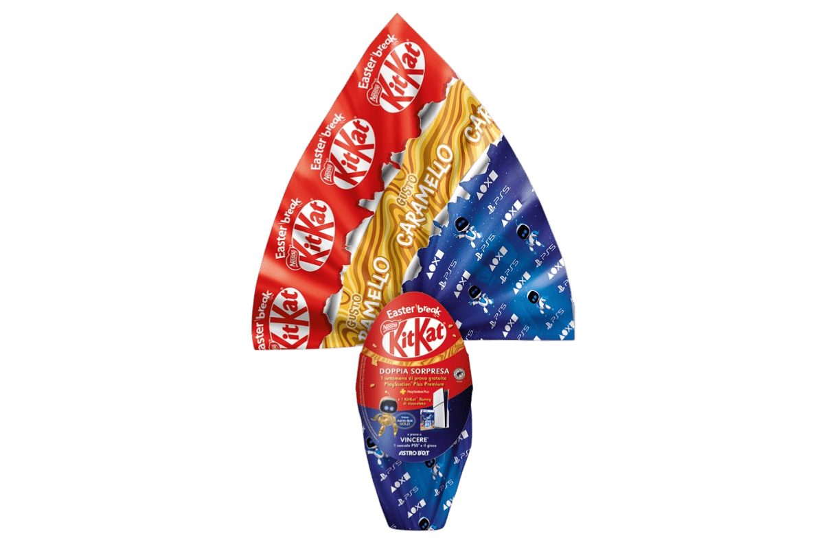 Čokoladno jajce iz mlečne čokolade z okusom karamele in zdrobljenimi vaflji.